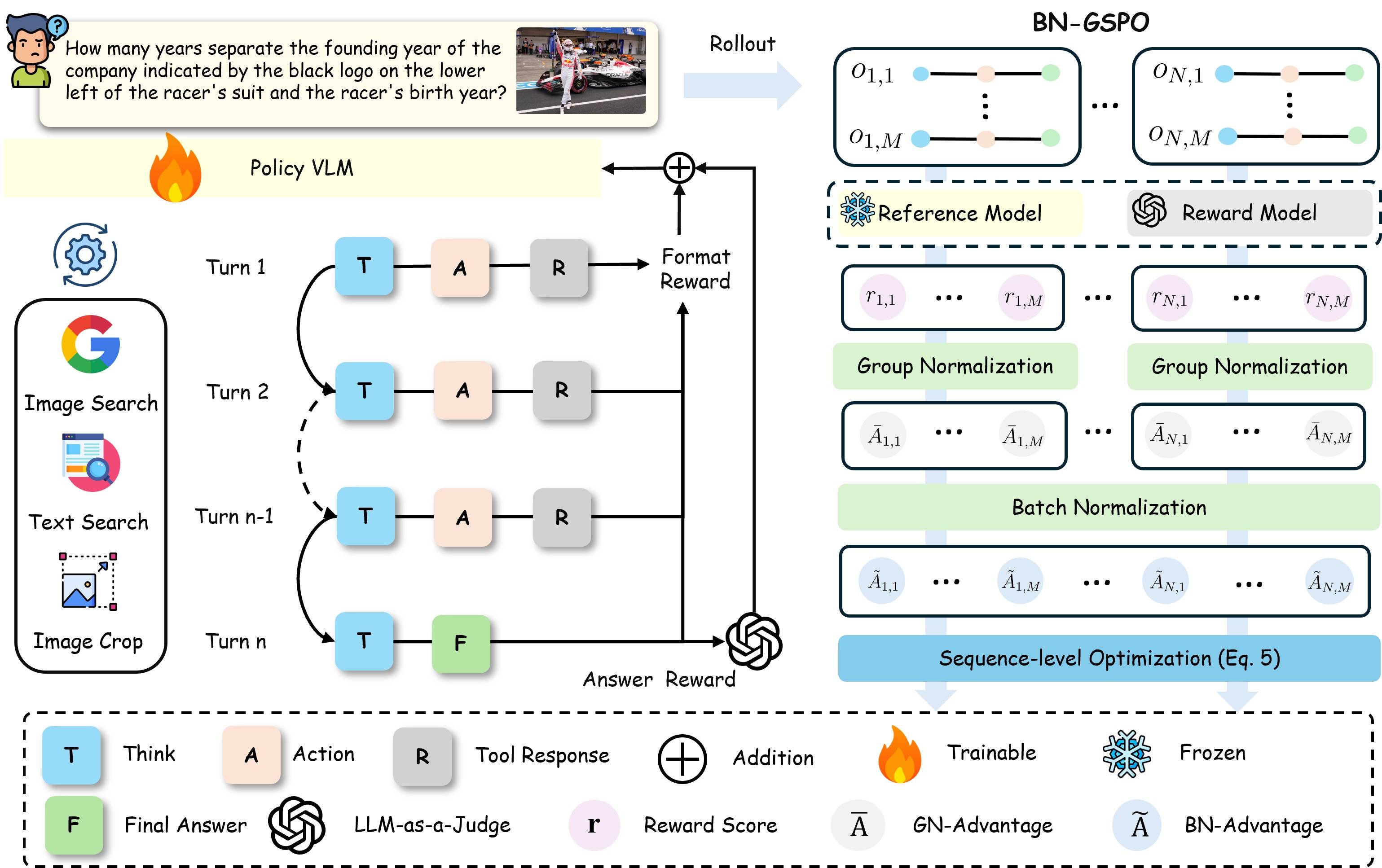 在实际应用场景中,SenseNova‑MARS 能够处理「细节识别 + 信息检索 + 逻辑推理」的复合任务,例如识别赛车服上的微小 Logo、查询企业背景、比对人物信息等,并可在无人工干预的情况下完成完整推理链路。
